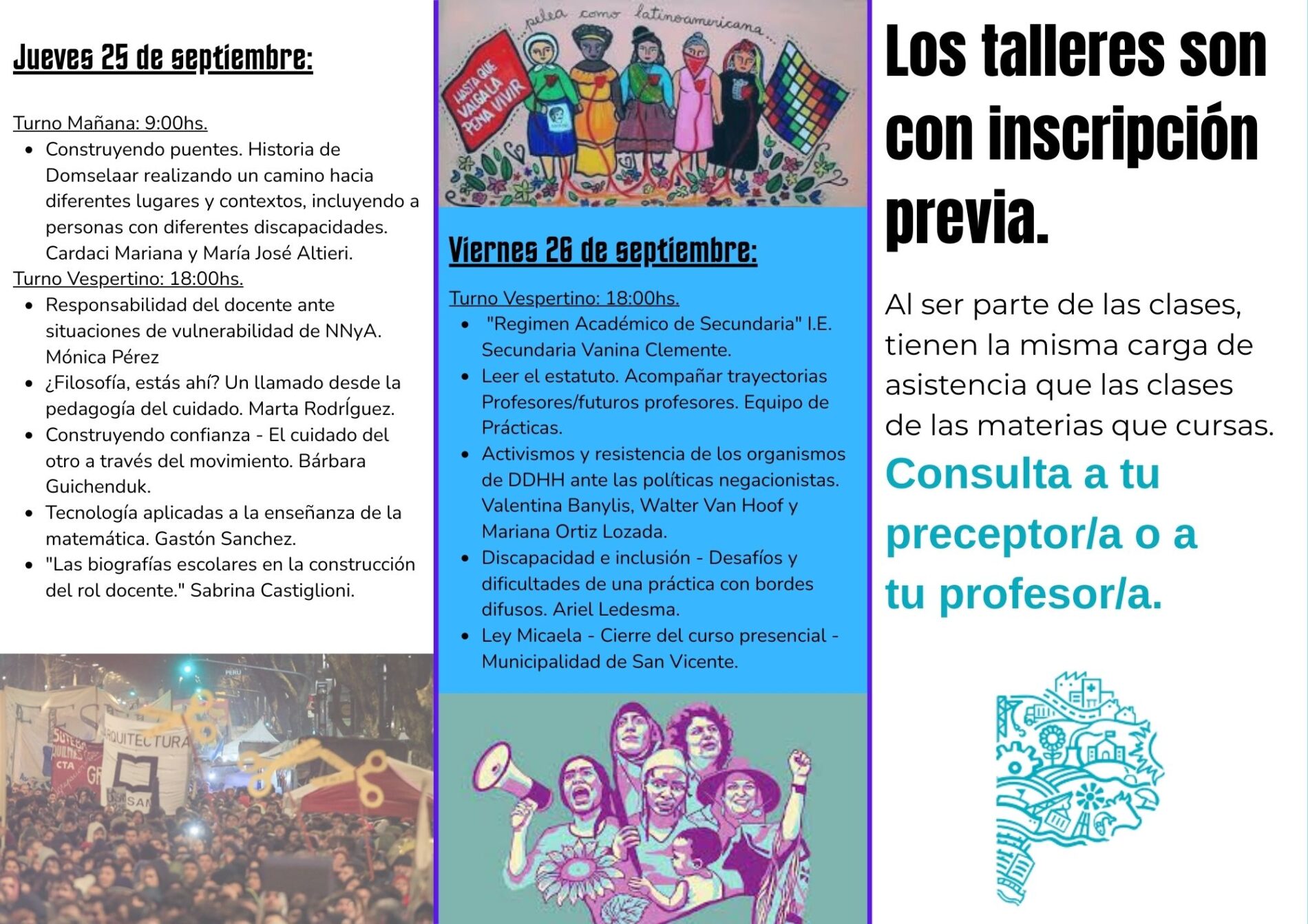 Link para inscripción en los talleres (recordá que son 40 cupos por taller, en caso de exceder el límite se deriva a otros talleres): https://forms.gle/n9yEeCJ3i7PtXjNo8